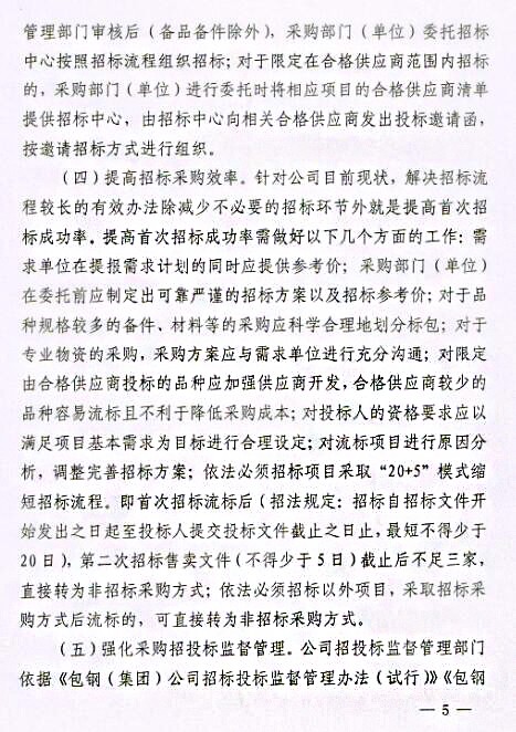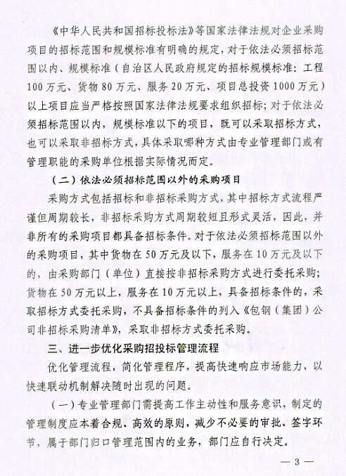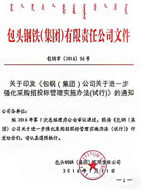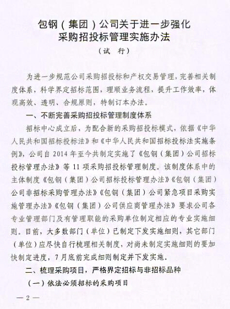 關(guān)于印發(fā)《包鋼(集團(tuán))公司關(guān)于進(jìn)一步強(qiáng)化采購(gòu)招投標(biāo)管理實(shí)施辦法(試行)》的通知