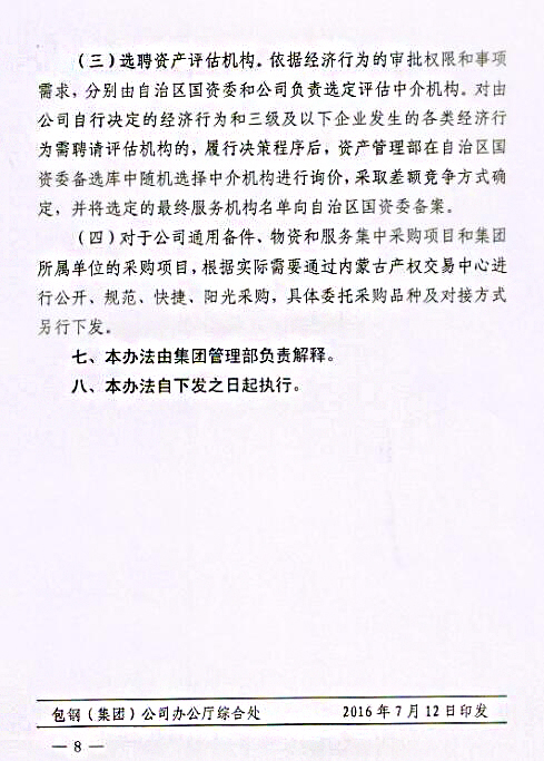 下一條:關(guān)于印發(fā)《包鋼(集團(tuán))公司關(guān)于進(jìn)一步強(qiáng)化采購(gòu)招投標(biāo)管理實(shí)施辦法(試行)》的通知